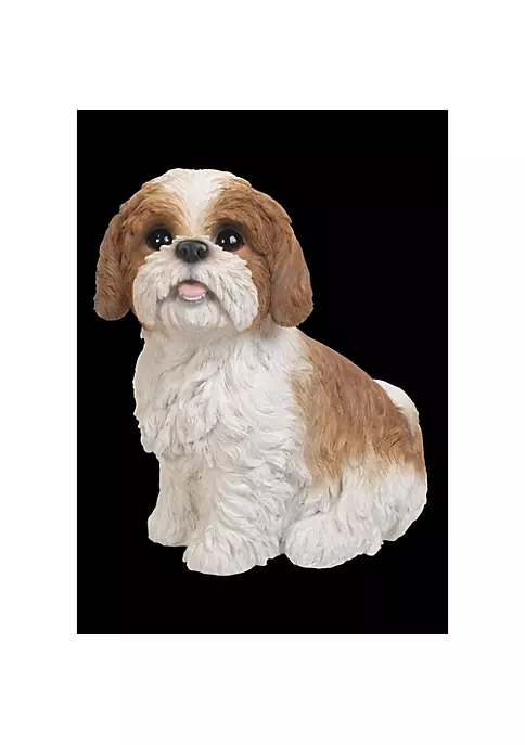 Features sitting Shih Tzu puppy statue